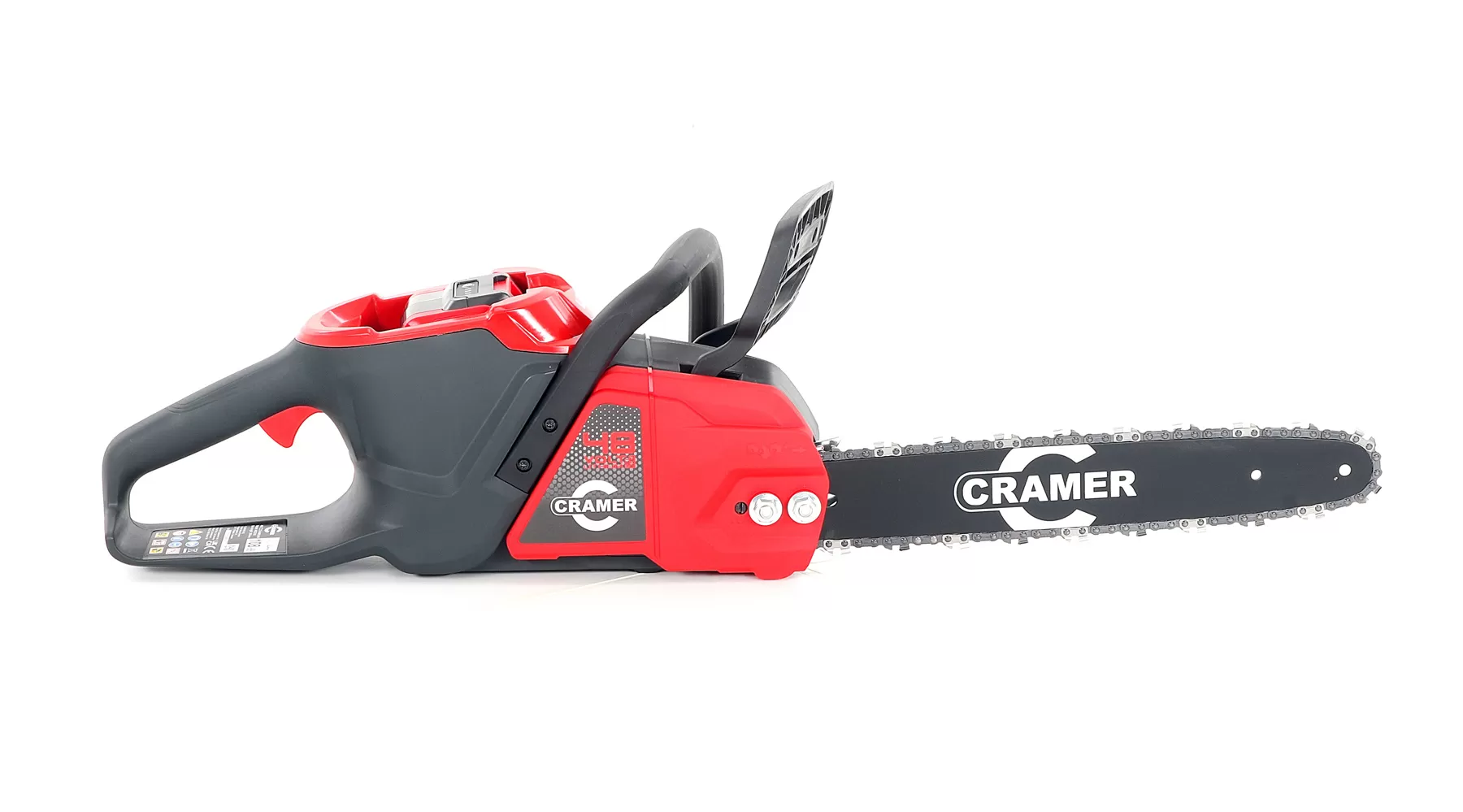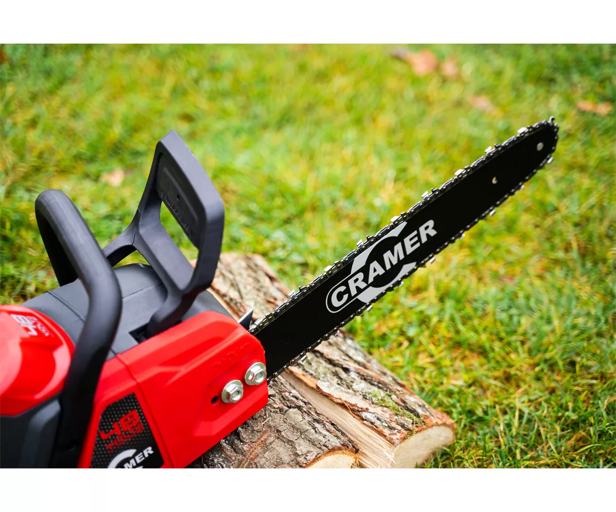 • Cramer 48CS18 je 48V výkonná akumulátorová řetězová pila, která byla navržena pro střední až velké zahrady. Nabízí výjimečnou odolnost díky své robustní konstrukci , silnému výkonu a točivému momentu našeho digitálního 48V 1,8kW bezkomutátorového motoru S výrobky Cramer lze rychle, efektivně a bezpečně provádět i ty nejnáročnější práce.