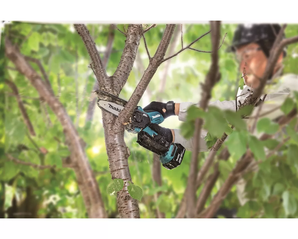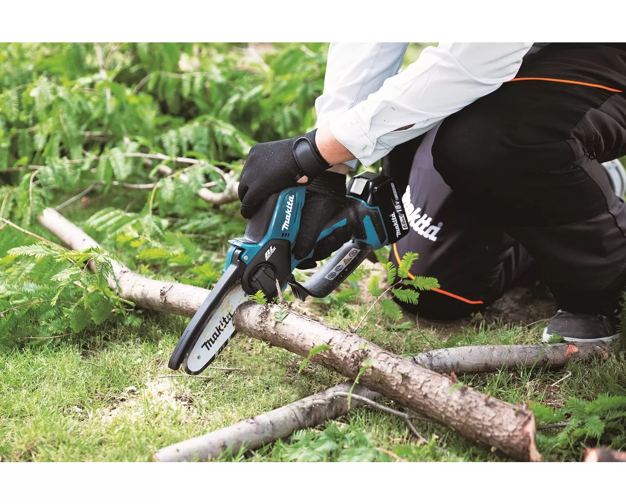 • Ľahká a kompaktná prerezávacia píla so 150 mm lištou pracujúca na 18V lítium-iónových batériách