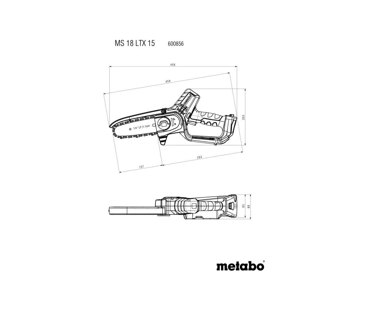 Aku prořezávací pila 18V bez aku MS 18 LTX 15 Metabo 600856840 Šikovná a bezpečná akumulátorová prořezávací pila, ideální k prořezávání stromů a keřů i zeleně. V kombinaci s teleskopickou tyčí MS (příslušenství) lze mini řetězovou pilu...