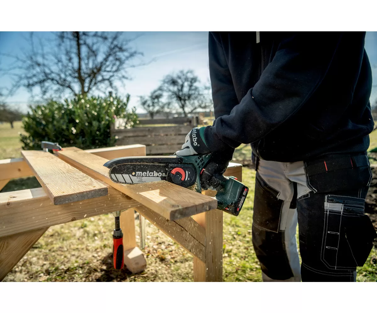 • V kombinaci s teleskopickou tyčí MS (příslušenství) lze mini řetězovou pilu používat jako vysoký prořezávač