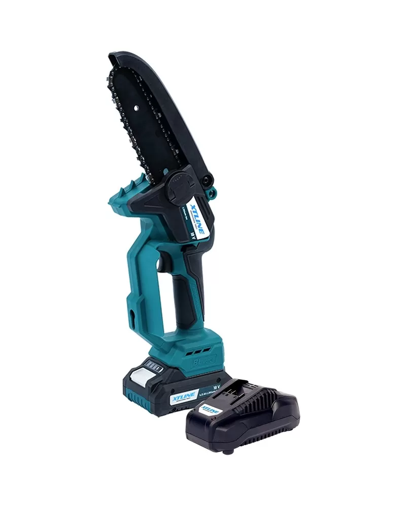 Mini řetězová pila slouží k prořezávání větví, keřů, nebo menších stromů s maximálním prořezem 150 mm. Velkou výhodou je ovládání pouze jednou rukou a bezpečnou práci zajišťují ergonomicky pogumovaná rukojeť a kryt řetězu.