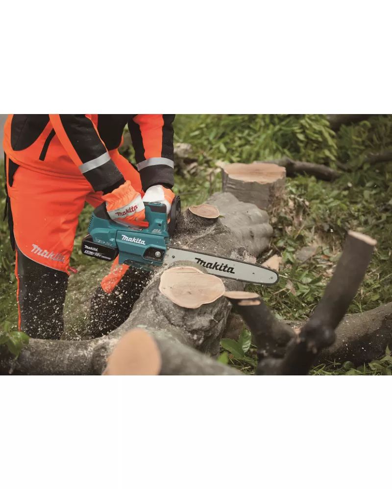 Aku řetězová pila 2x18V bez aku Makita DUC406ZB Velmi silná pila s vysokou rychlostí řezu fungující na dva akumulátory Li-ion 18V LXT … Celý popis
