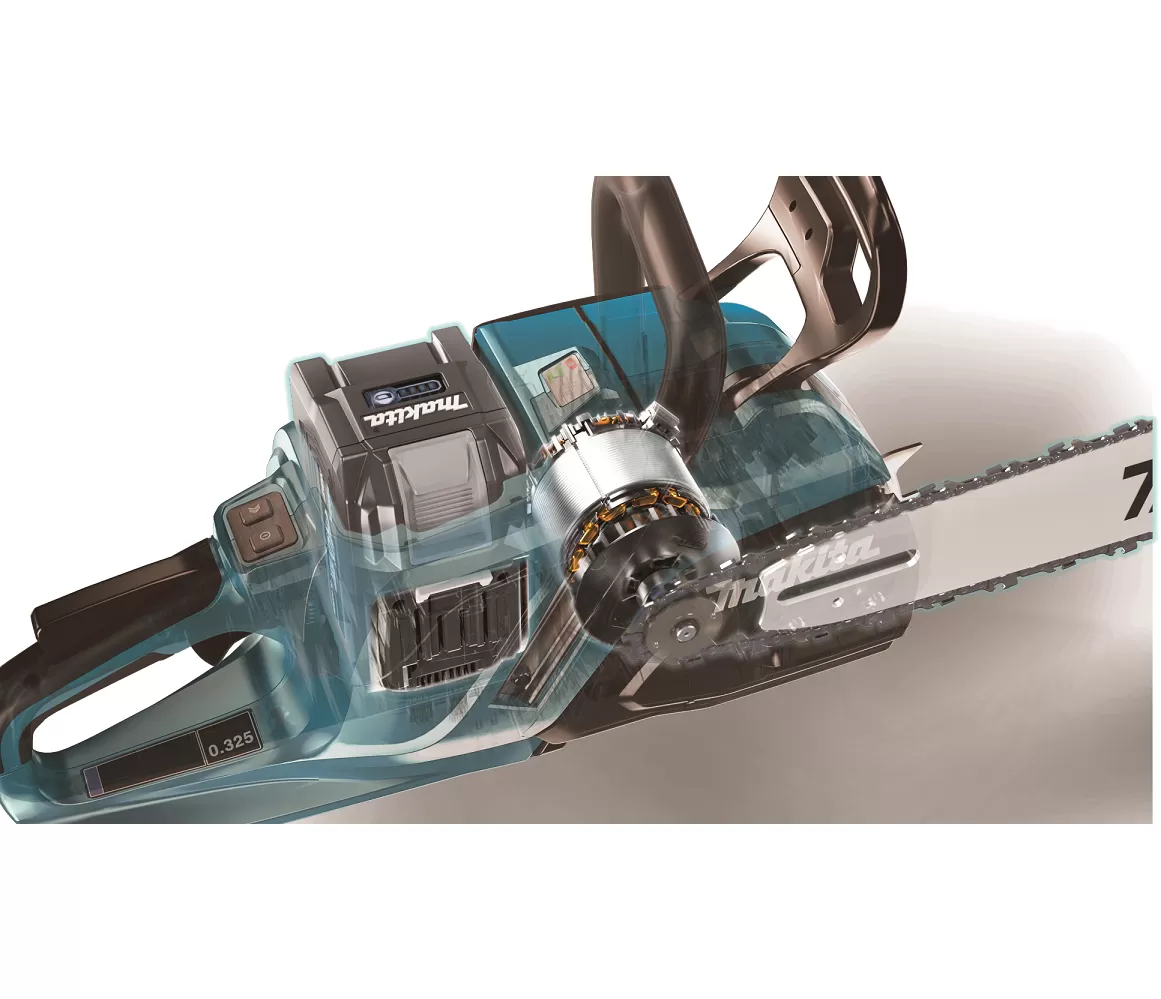 • Velmi silný bezuhlíkový motor 2,8 kW (výkon s BL4080H) je napojený přímo na řetězku