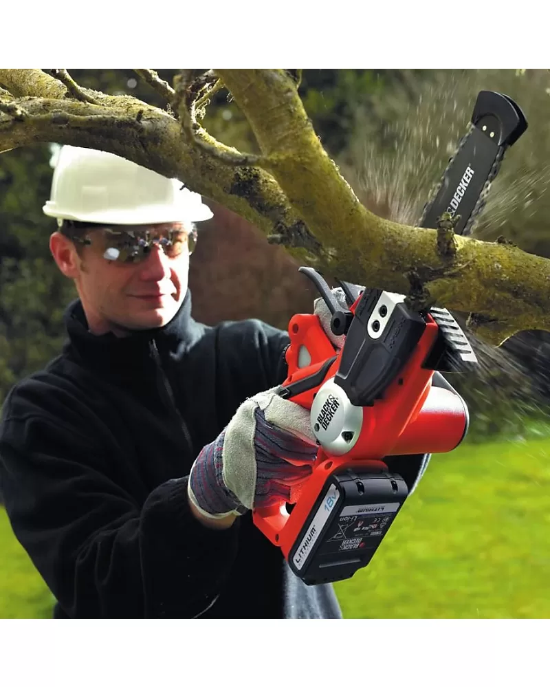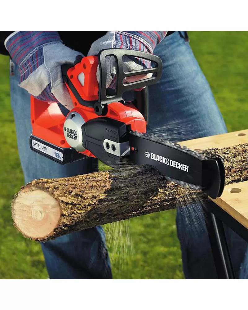 Aku řetězová pila BLACK&DECKER GKC1820L20 umožňjící díky své nízké hmotnosti a absenci kabelu velmi pohodlnou manipulaci při práci.