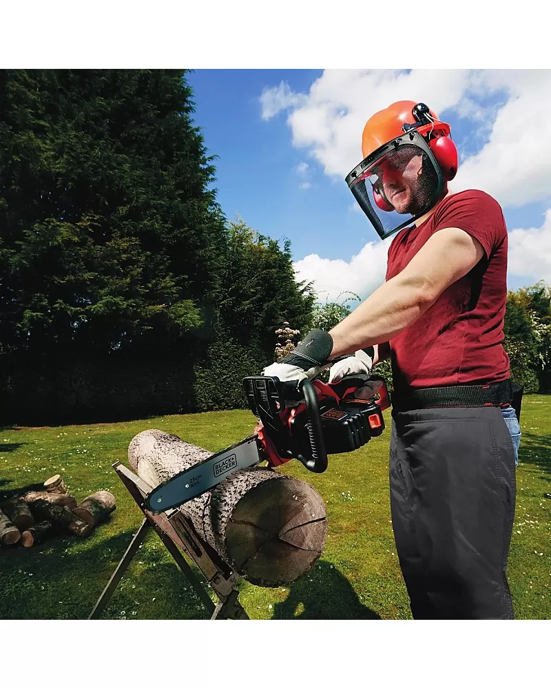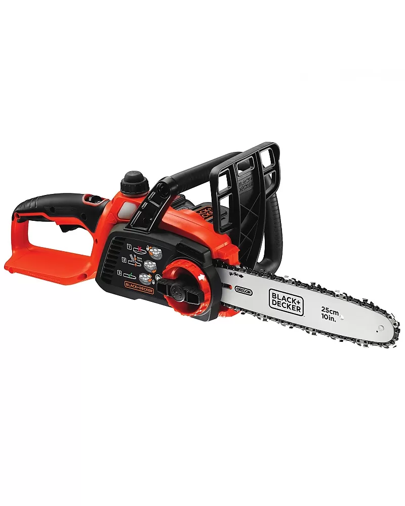Aku řetězová pila BLACK and DECKER GKC1825L20 umožňjící díky své nízké hmotnosti a absenci kabelu velmi pohodlnou manipulaci při práci.