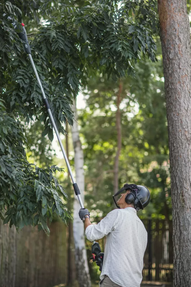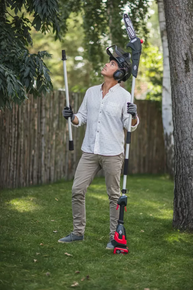 • Prodlužovací hliníková tyč o celkové délce 3 m, umožňuje rychlé a bezpečné řezání vyšších větví