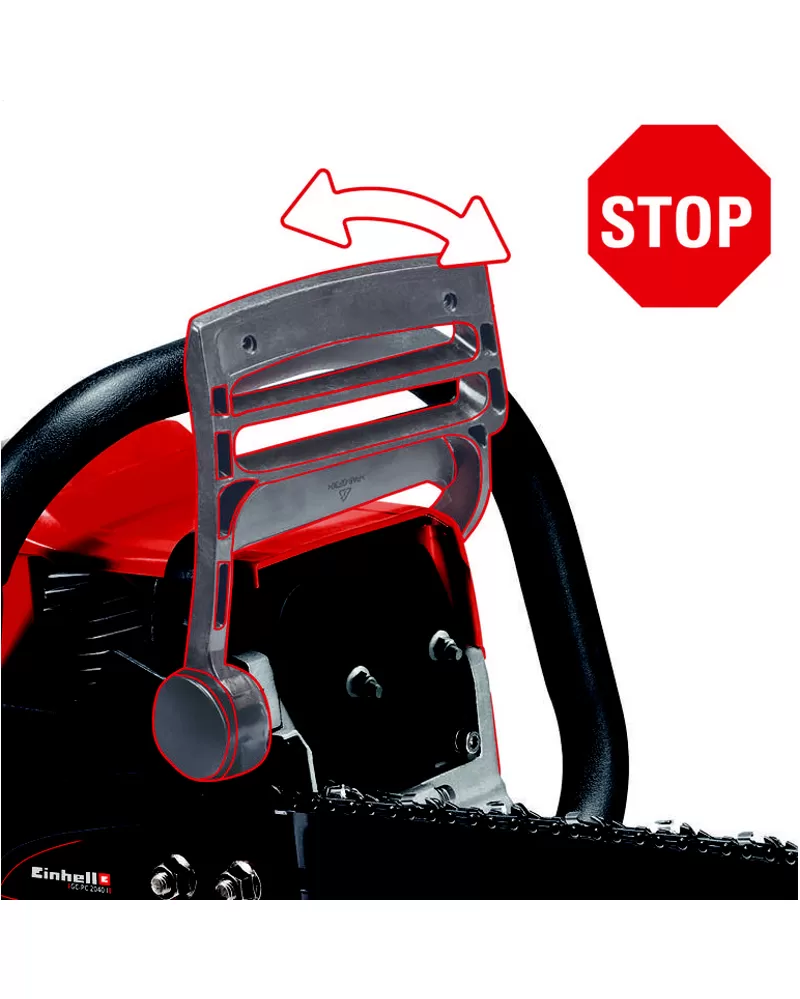 • Ta se aktivuje bezprostředně při vymrštění pily, řetěz se tak okamžitě zastaví