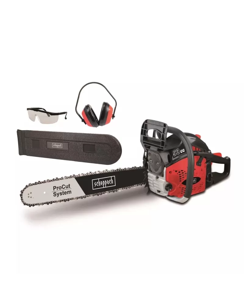 Benzínová pila Scheppach BKS 5300 S je výkonná univerzální pila, vhodná na příležitostné kácení stromů, prořezávání keřů, přípravu palivového dřeva a další práce okolo domu, v sadu nebo lese.
