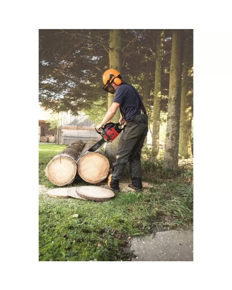 • Pila má silný motor o objemu 53 cm3, je skvěle vyvážená, díky použití moderních materiálů je poměrně lehká a držadlo umožňuje snadné držení pily v různých polohách