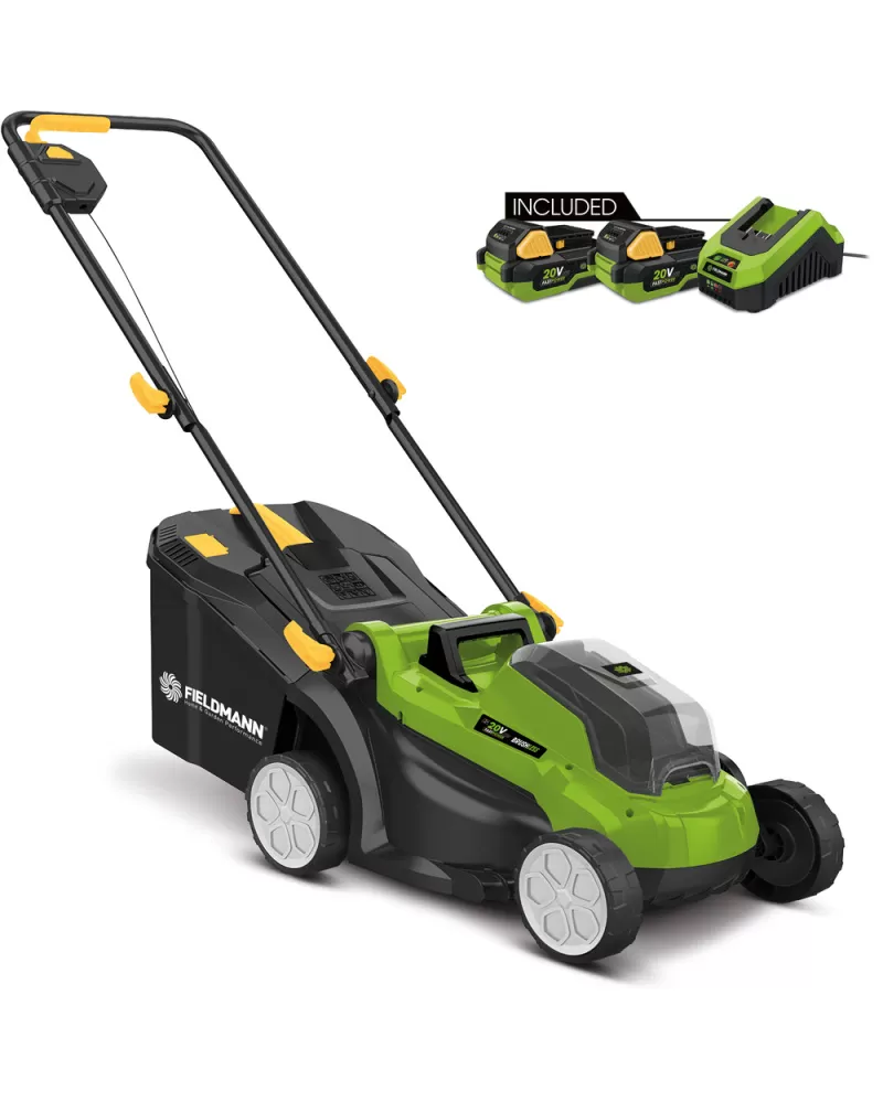 • Akumulátorová sekačka na trávu značky FIELDMANN si poradí s každou zahradou do rozlohy 350 m2