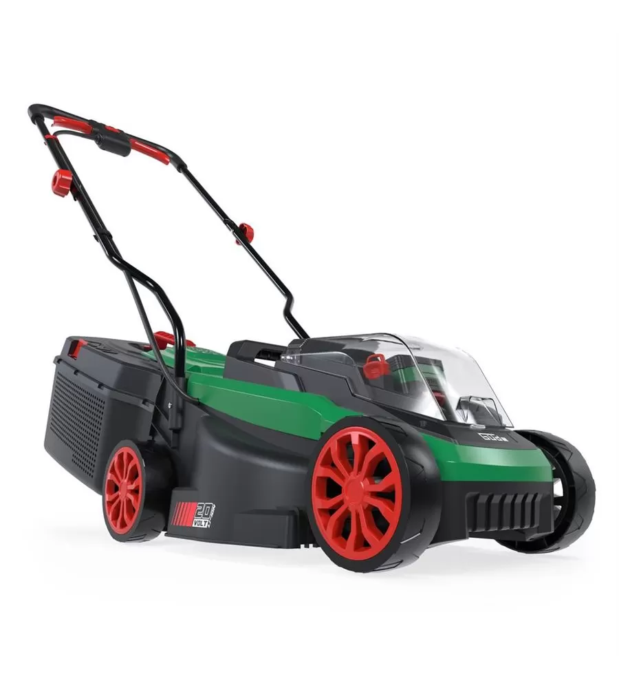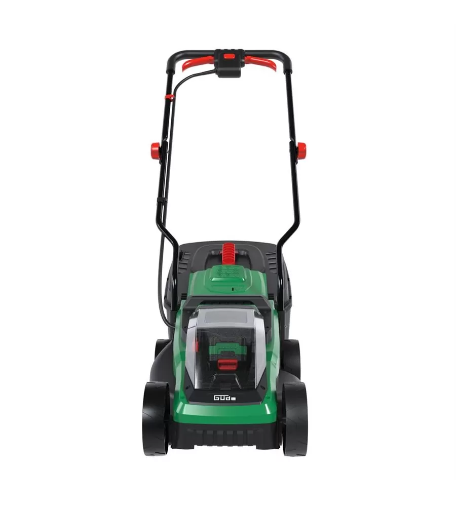 Akumulátorová sekačka GÜDE je lehká a obratná, vhodná pro malé a středně velké trávníky.