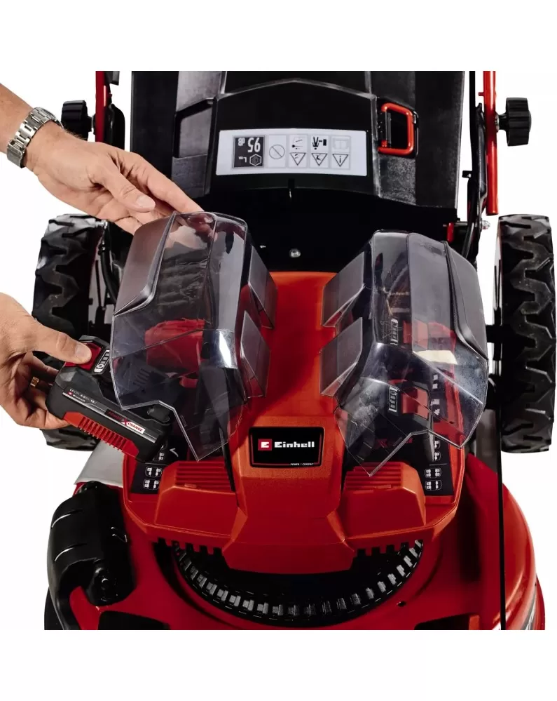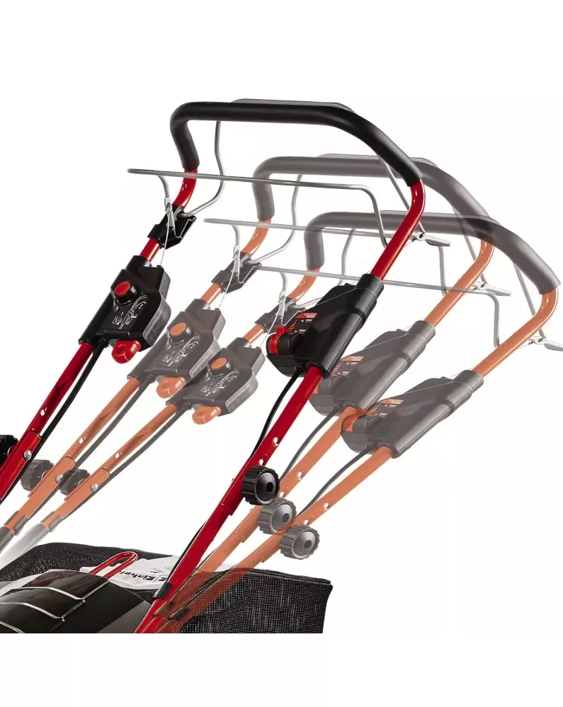 • Perfektní výsledky sečení jsou zajištěny pokaždé, když souvisí s Einhell Vortex Technology Deck a šestipolohovým nastavením výšky pomocí jedné páky