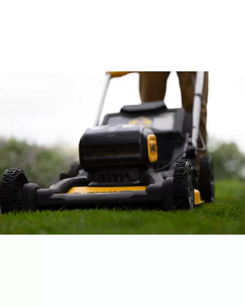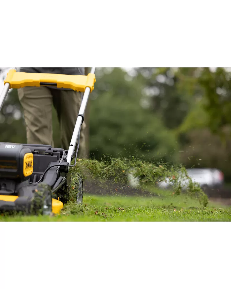 • Sekačka DEWALT 2x18V s pojezdem, která poskytuje rychlý, účinný provoz, bez výfukových plynů nebo přímých emisí, je vybavena dvojitou schránkou pro 2 akumulátory 18V XR s kapacitou po 8,0 Ah a vysoce výkonným žacím ústrojím se šířkou záběru 53 cm, které maximalizuje energetickou účinnost a prodlužuje dobu chodu.