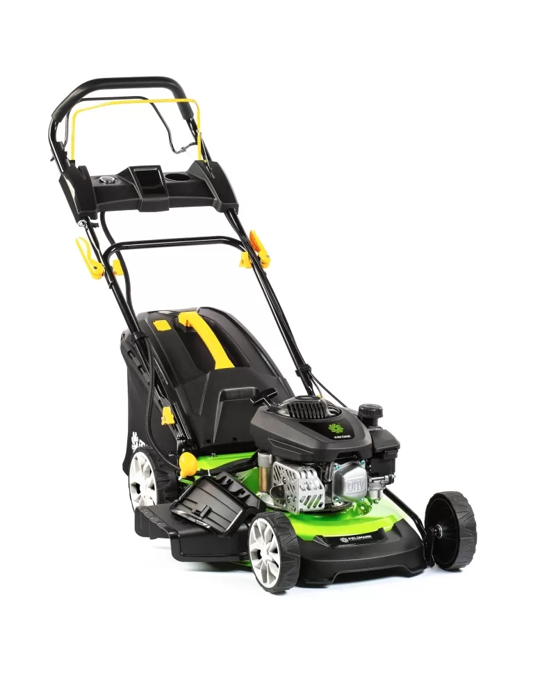 Benzínovou sekačku oceníte především na zahradách a pozemcích, které nejsou připojené k elektrické síti. Jednoduše se ovládá a odpadají starosti s hledáním zásuvky, omezenou mobilitou nebo dokonce přeseknutím kabelu. Čtyřtaktní motor DUCAR OHV 150cc a šířka záběru 46 cm se nejlépe uplatní na zahradách do velikosti 1 200 m2. Novinkou je elektrický startér, kdy sekačku uvedete do chodu pouhým stisknutím tlačítka. Podle vašich preferencí a potřeb trávníku si můžete pomocí centrální páky nastavit výšku sečení až na 7 různých pozic v rozsahu 25 - 75 mm. Sběrný koš o obsahu 50 l je vybavený ukazatelem zaplnění a upozorní vás, kdy je zapotřebí nádobu vyprázdnit. To však není jediná možnost jak naložit s posekanou trávou, díky nastavení 4v1 si můžete vybrat, zda chcete využít sběrného koše, použijete boční nebo zadní odhoz či zvolíte variantu mulčování. Kvůli solidnímu ocelovému šasi je celková váha 35 kg, ale díky funkci pojezdu a kvalitním kolečkům s ložisky si toho ani nevšimnete. Uživatelský komfort je ještě zvýšen polohovatelným madlem s měkčeným potahem.