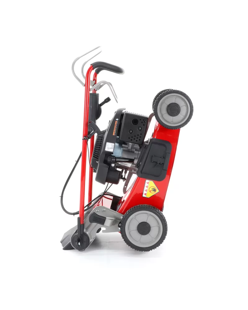 • Ergonomická rukojeť s ovládacími prvky otáček motoru a speciální povlak na obvodu sběracího koše, který stimuluje proud vzduchu, aby se neprášilo na obsluhu.