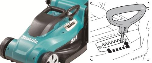 Nastavení výšky sedmi poloh umožňuje nastavit požadovanou výšku sečení. Přidržení držadla jednou rukou a poté posunout seřizovací páčku druhou rukou. Výšku sekání můžete upravit v rozsahu od 20-75 mm.