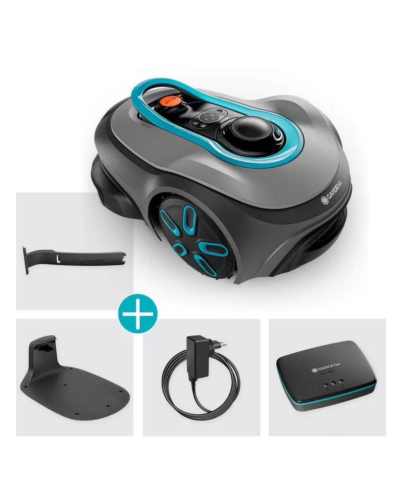 • Obsah balení: 1× GARDENA smart SILENO free 1500 m2, 1× nabíjecí stanice, 1× smart Gateway, 1× instalační pomůcka