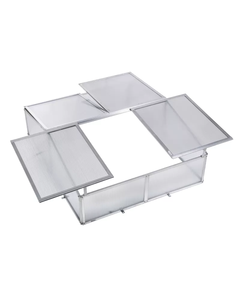 • Dvoudílné pařeniště je vyrobené z kvalitních dvoustěnných polykarbonátových desek o tloušťce 4 mm s UV filtrem, které zajišťují dobré proudění světla dovnitř pařeniště.