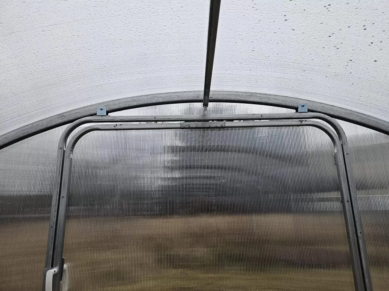 Konstrukce - konstrukce skleníku je z masivních obloukových trubek 40 x 20 mm (podélníky a vzpěry 20 x 20 mm). Materiál profilů je galvanicky pozinkovaný = na povrchu je vytvořená silná vrstva ochranného nekorodujícího zinku. Jednotlivá žebra nosných oblouků jsou od sebe vzdálena pouhých 67 cm, což je velká výhoda tohoto modelu skleníku oproti jiným výrobkům na českém trhu. Malá rozteč oblouků, profil 40 x 20 mm a fakt, že jsou vyrobeny z jednoho kusu oceli garantuje extrémní únosnost celé konstrukce skleníku. Přední a zadní čela skleníku jsou z výroby sešroubované a tvoří jednolitý celek. Přední i zadní čelo mají jednokřídlé dělené dveře na pantech (horní a spodní díl, kdy horní díl funguje jako samostatné okénko). Skleník je tedy PRŮCHOZÍ. Jako příplatkové příslušenství lze dokoupit automatický otvírač.