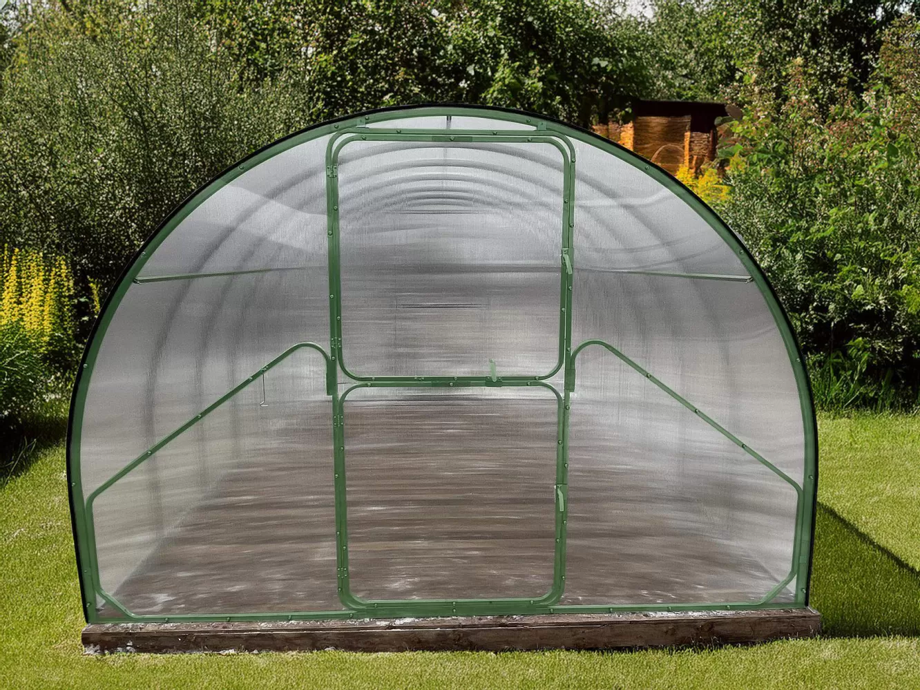 Kombinace z velmi masivních nosných oblouků z jednoho kusu oceli a komplet sešroubované přední a zadní stěny skleníku tvoří z tohoto výrobku jeden z nejodolnějších a současně na montáž nejjednodušších skleníků na českém trhu.