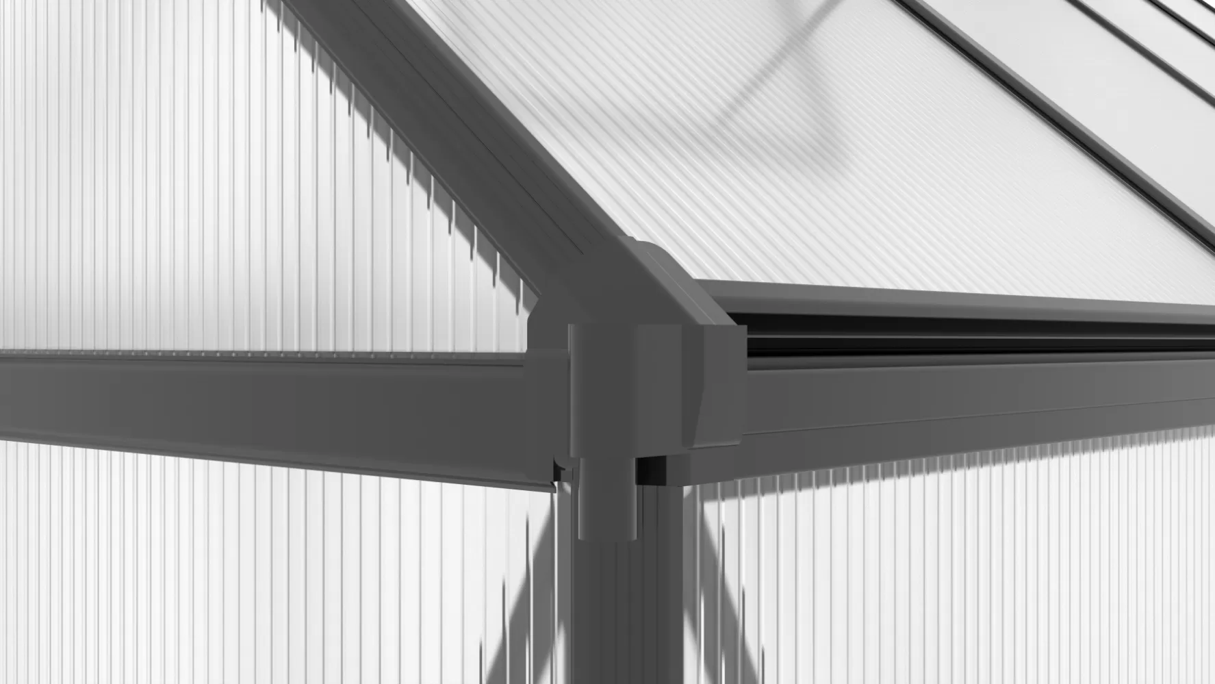 Polykarbonát - prémiový německý polykarbonát 4 mm s UV filtrem (na slunci a mrazu nekřehne ani nežloutne). Smluvní prodloužená záruka 10 let na nerozbitnost polykarbonátu krupobitím je u skleníků od LANIT PLASTU samozřejmostí.