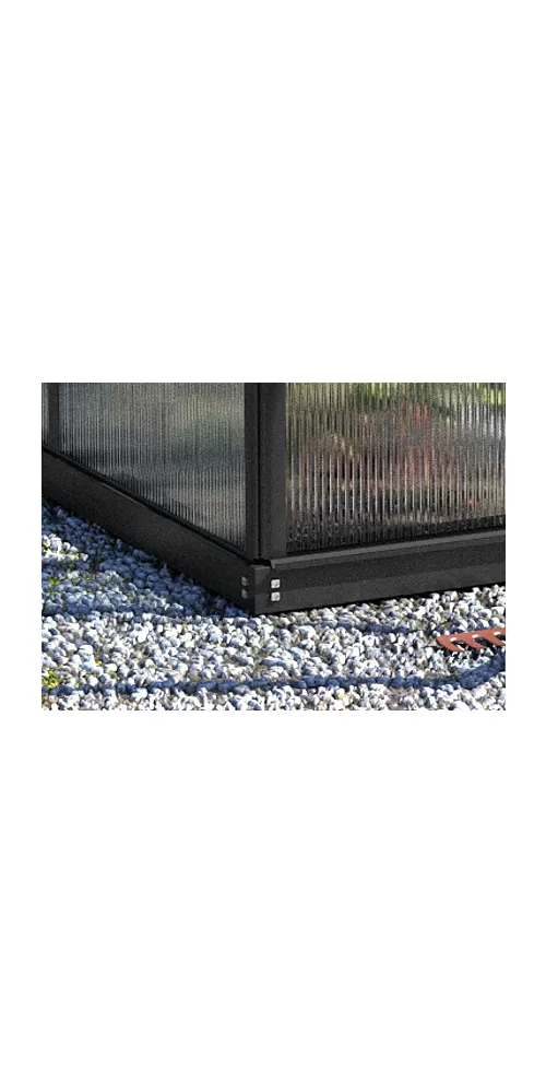 Polykarbonát - prémiový německý polykarbonát 6 mm s UV filtrem (na slunci a mrazu nekřehne ani nežloutne). Smluvní prodloužená záruka 10 let na nerozbitnost polykarbonátu krupobitím je u skleníků od LANIT PLASTU samozřejmostí.