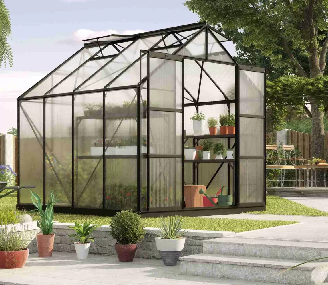 Skleník VITAVIA URANUS 6700 PC 6 mm černý LG3569 Hliníkový skleník, š 2,57 x d 2,58 m, černá barva, 2x stř. okno, polykarbonát 6 mm, plocha 6,63 m2.… Celý popis