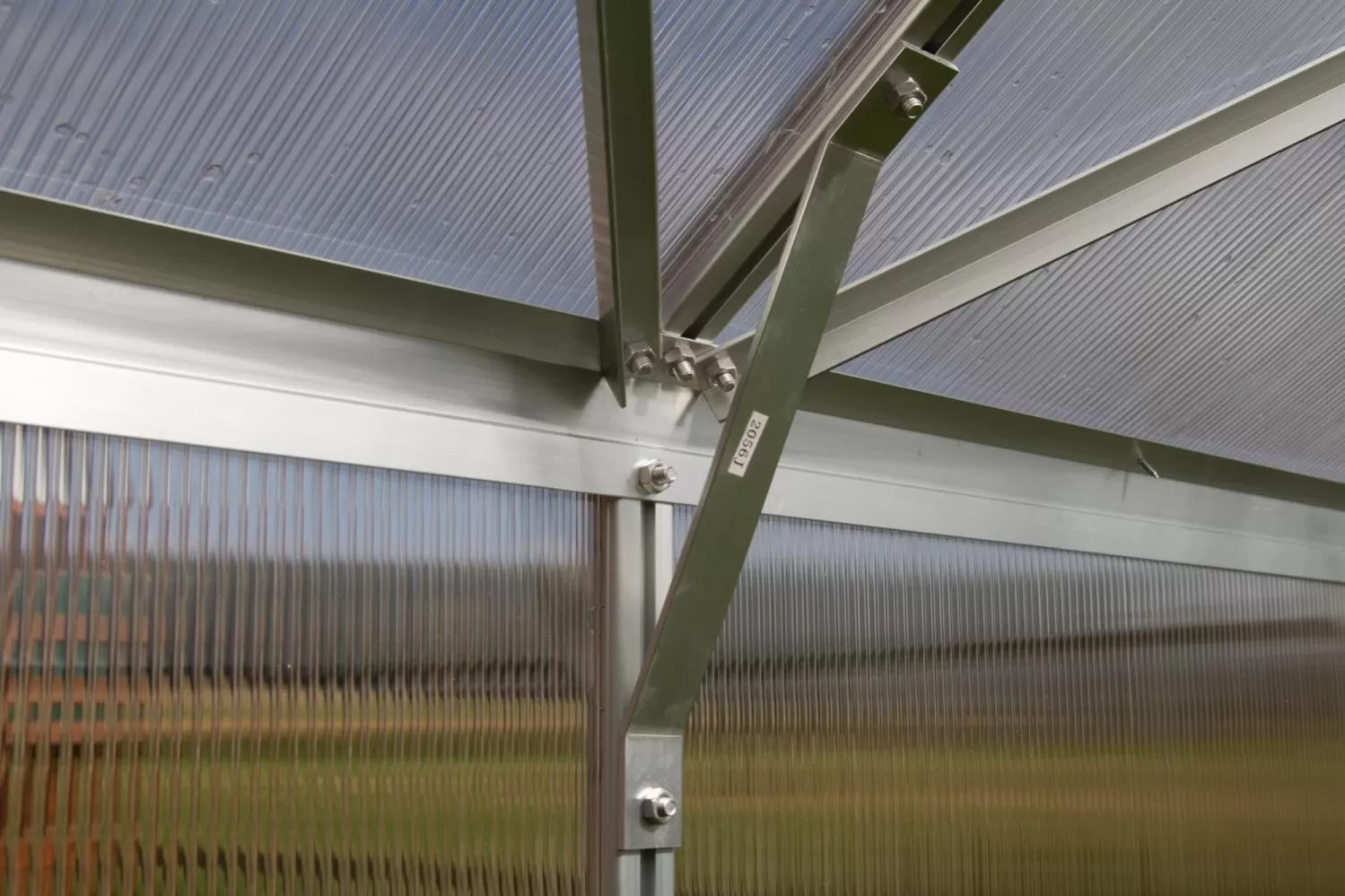 Skleníky řady URANUS jsou zařazeny do kategorie PREMIUM - skleník je vyrobený značkovým výrobcem z Velké Británie. Skleník je vyrobený z eloxovaných hliníkových profilů. Prosklení je z tepelně-izolačních komůrkových polykarbonátových desek síly 6 mm. Střešní okna jsou zasklena polykarbonátem 4 mm. Prosklení je do hliníkových profilů kotveno pomocí ocelových sponek.
