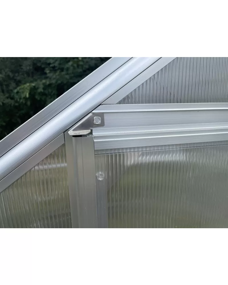• Skleník je vyrobený z eloxovaných hliníkových profilů, prosklení je z kaleného čirého skla síly 3 mm.