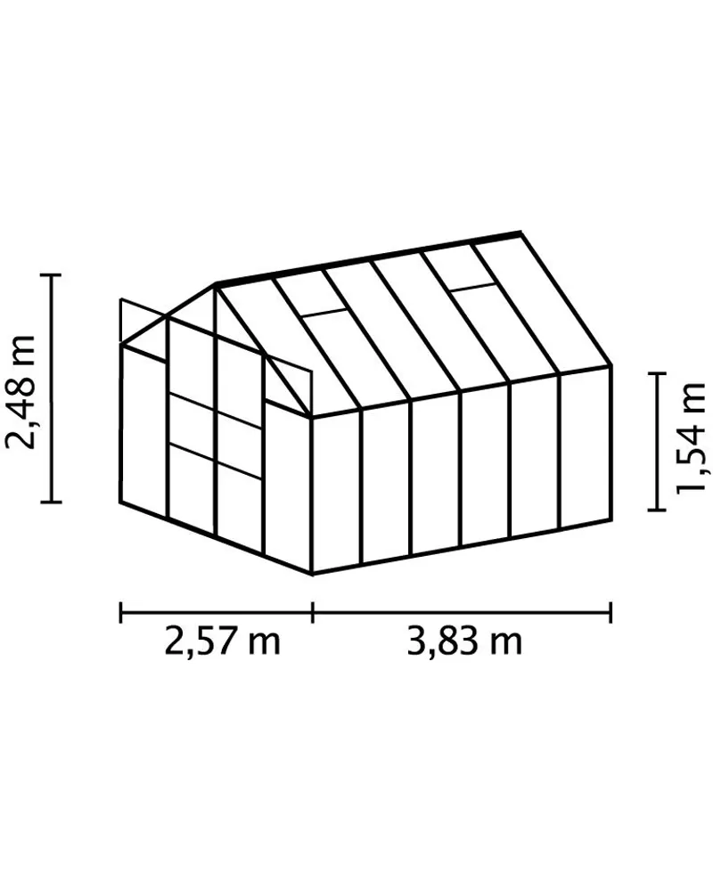 • Skleník je vyrobený z eloxovaných hliníkových profilů, prosklení je z kaleného čirého skla síly 3 mm.