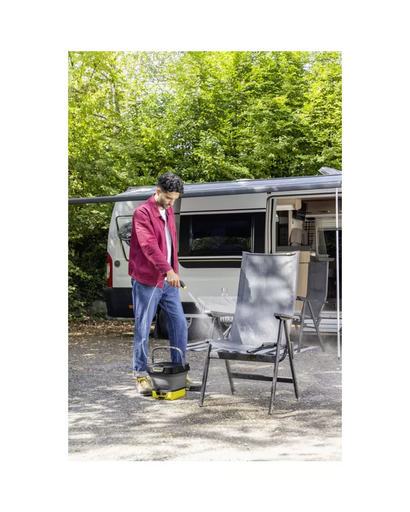 • Pro každého, kdo potřebuje čisticí prostředek na cesty, který lze skladovat a přenášet i v tom nejmenším prostoru: kompaktní a lehká skládací tlaková myčka OC 3 od společnosti Kärcher má skládací nádrž na vodu.