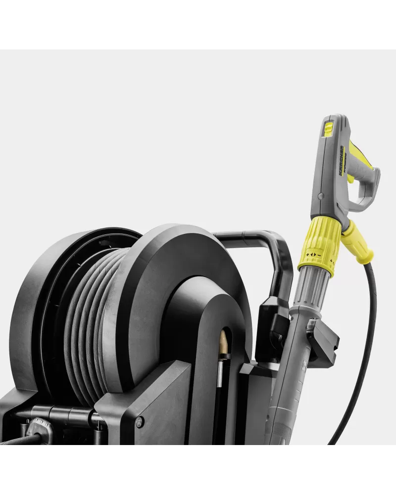• Navíc je stroj vybavený vysokotlakou hadicí Ultra Guard s povrchovou úpravou z Teflonu® a možnostmi pro uložení příslušenství, i bubnem pro automatické navíjení a odvíjení hadice do 45° - i pod tlakem.