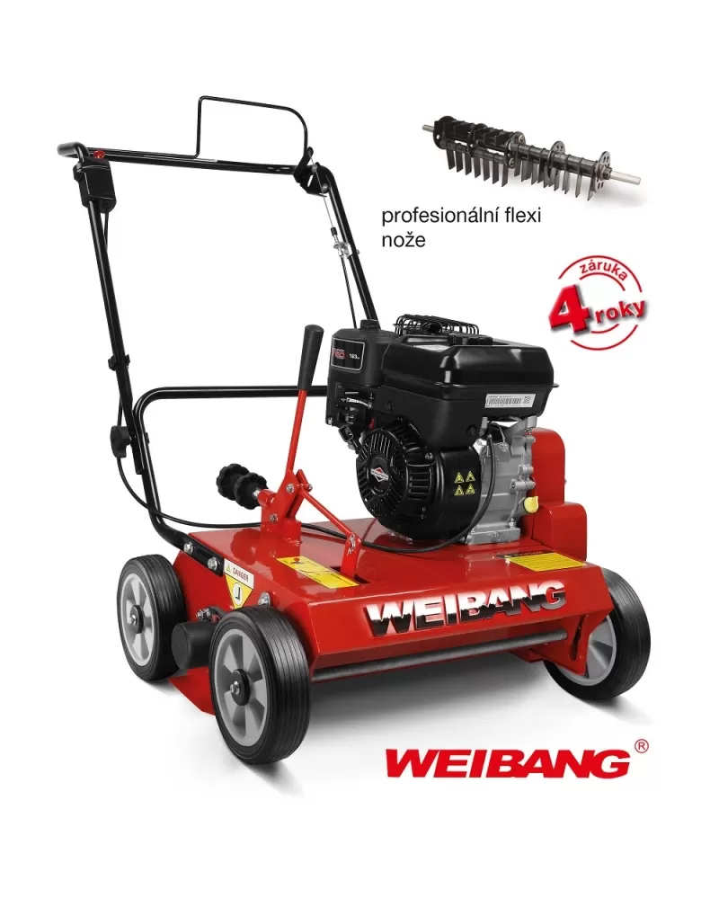 Benzínový provzdušňovač trávníku Weibang WB 486 CR-B profesionální flexi nože ideálně a šetrně provzdušní hustý porost trávníku.