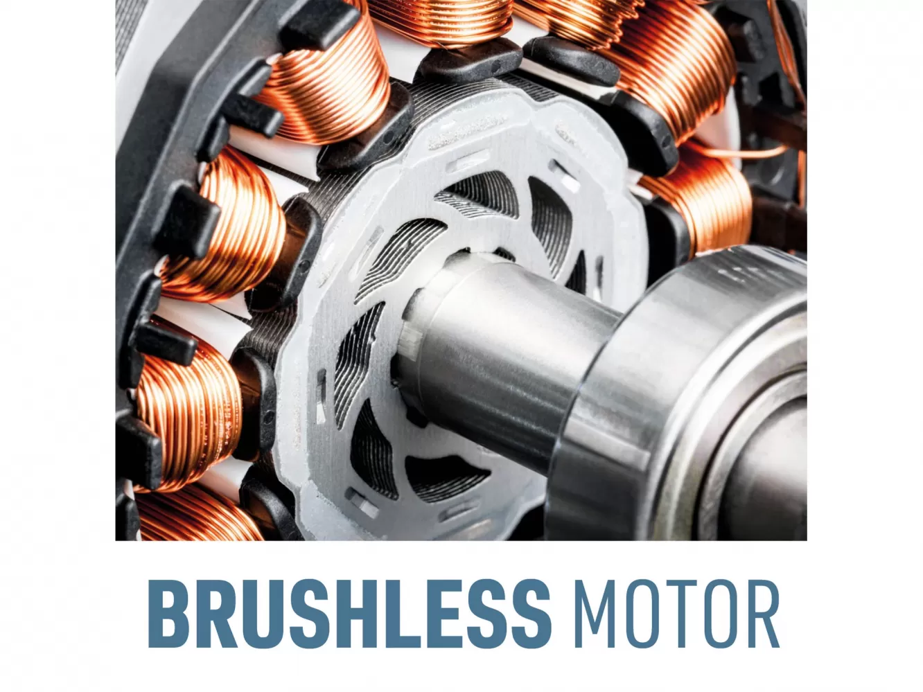 • Tento nový typ motoru má vyšší životnost, je výkonnější a má menší spotřebu el. energie než klasické motory s uhlíkovými kartáči.