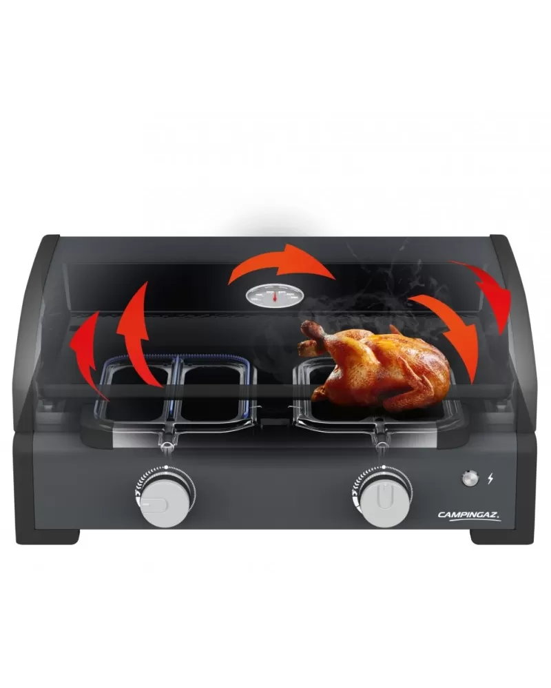 • 2 výkonné hořáky Campingaz Blue Flame s celkovým výkonem 6 kW, které zajišťují rovnoměrné rozložení tepla
