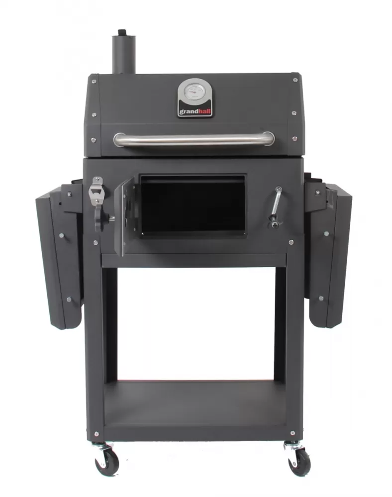 Atraktivní gril na uhlí se těší nebývalé oblibě uživatelů, kteří preferují grilování na uhlí, ale vyžadují komfort grilu plynového. Robustní konstrukce, celolitinový rošt, nastavitelná výška palivového roštu pro lepší kontrolu teploty, přední dvířka pro pohodlné a čisté přikládání paliva. Sklopné postranní police šetří místo při skladování grilu, bonusem je integrovaný otvírák láhví.