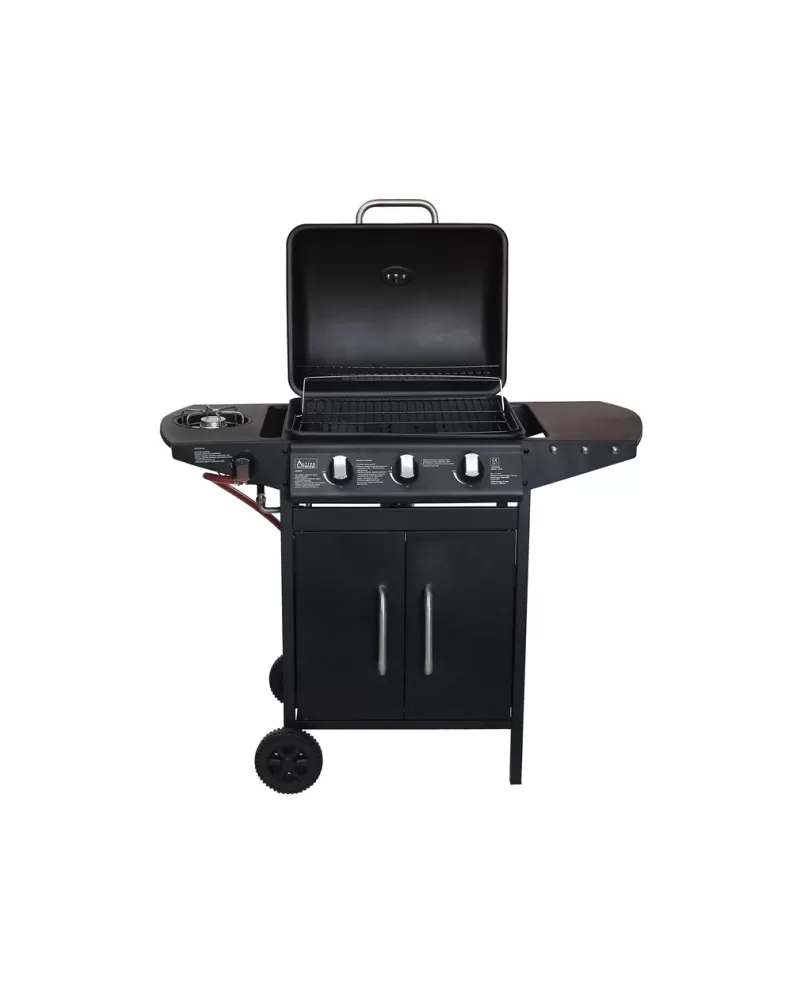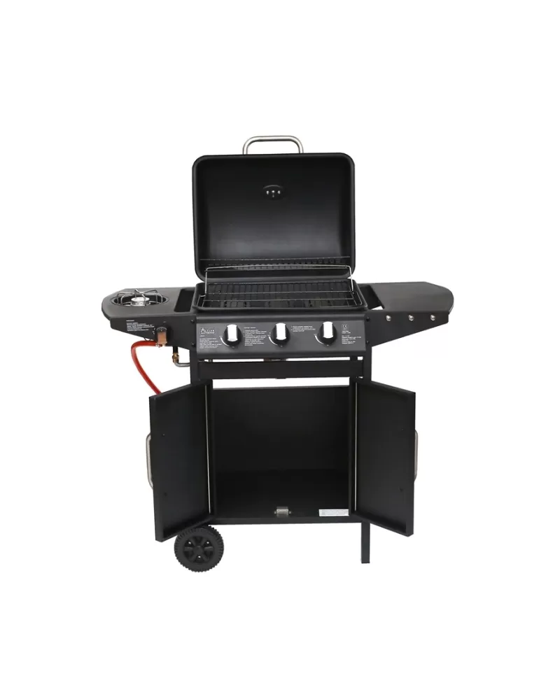 • Gril rovněž má praktický integrovaný boční vařič vhodný na přípravu omáček, horkých nápojů nebo příloh