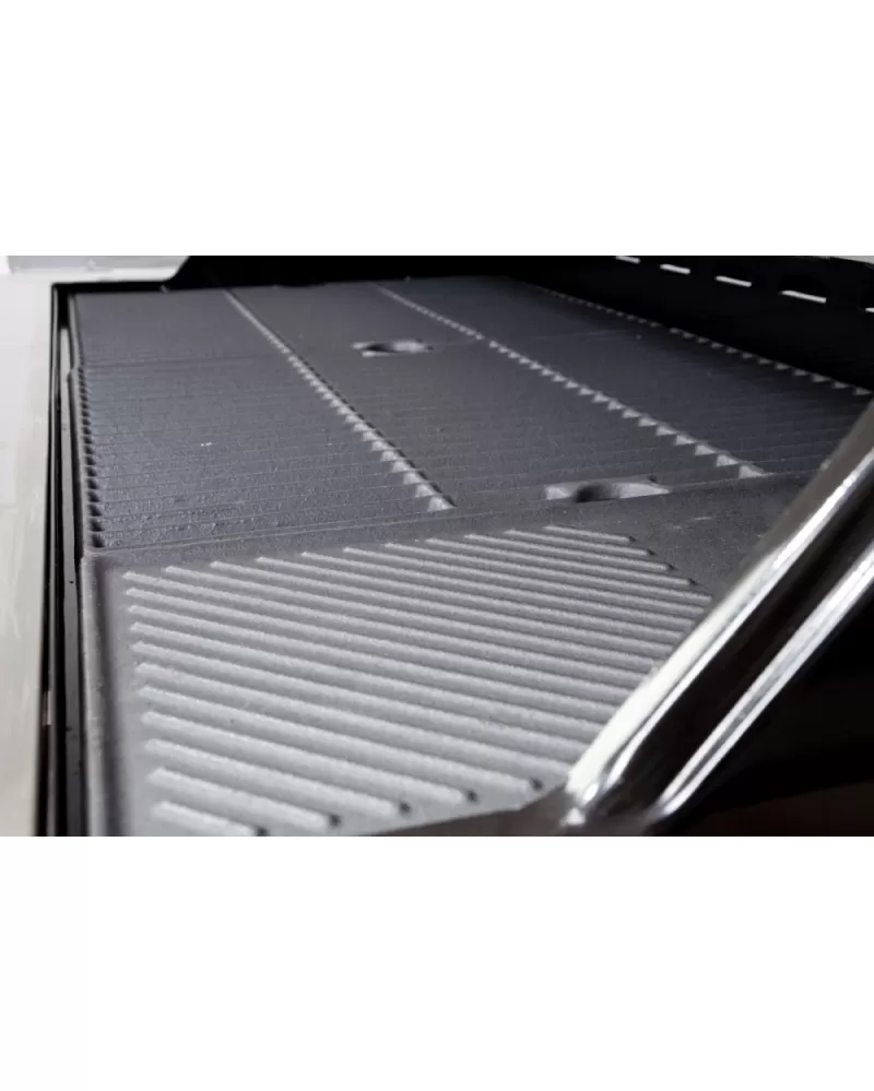 • Pod levou odkládací plochou se skrývá nádobka, kam můžete odkládat např. naložené maso připravené ke grilování.