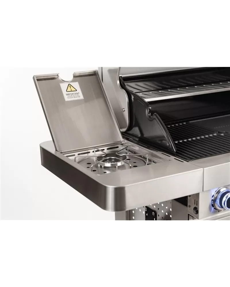 • Na levé straně grilu se nachází přídavný hořák, vhodný pro přípravu omáček nebo udržení hotových pokrmů v ideální teplotě