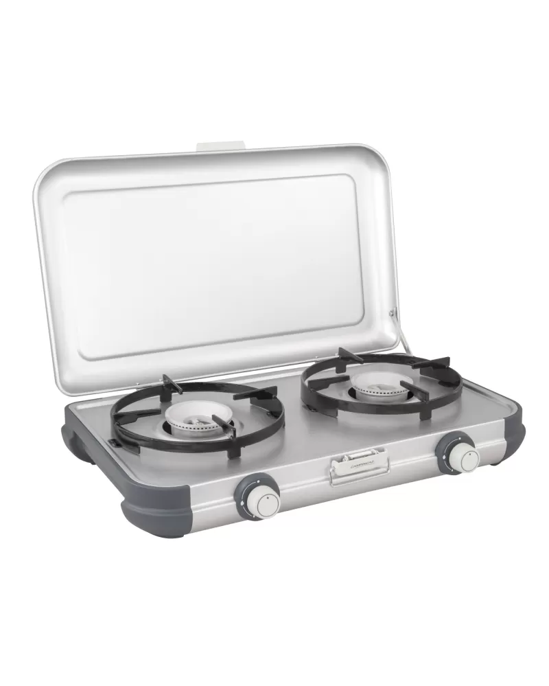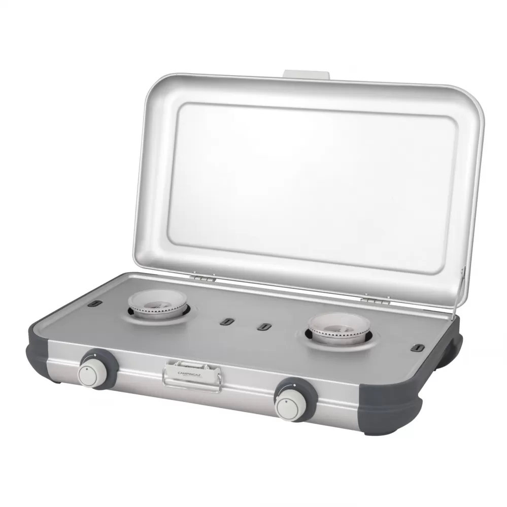• Campingaz Camping Kitchen® 2 je lehký, stabilní a snadno přenosný vařič se dvěma hořáky, zdroj plynu je PB lahev.