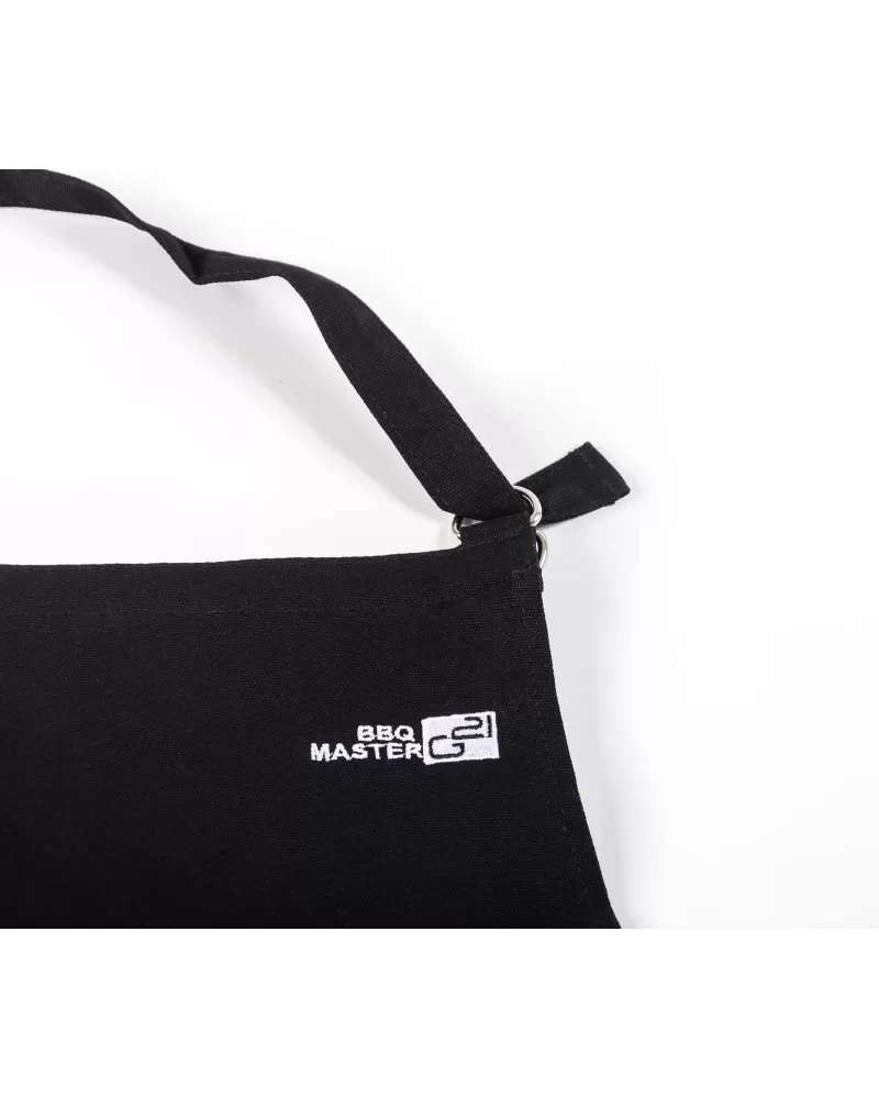 • Bavlněná grilovací zástěra se zavazováním za krkem a v pase, takže ji může použít kdokoliv, drobná žena i velký šéf grilu.