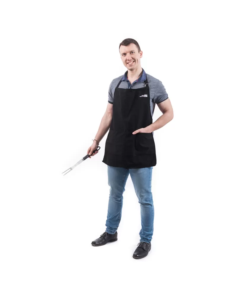 • Grilovací zástěra s dvěma kapsami z pevné 100% bavlny v praktické černé barvě chrání vaše oblečení před ušpiněním při grilování.