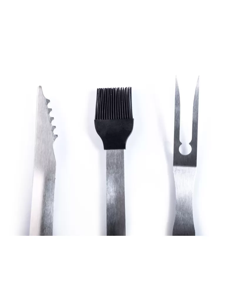 • Grilovací kleště (45 cm) a grilovací vidlička (41 cm) jsou z nerezu, štětec na marinování (41 cm) je ze žáruvzdorného silikonu.