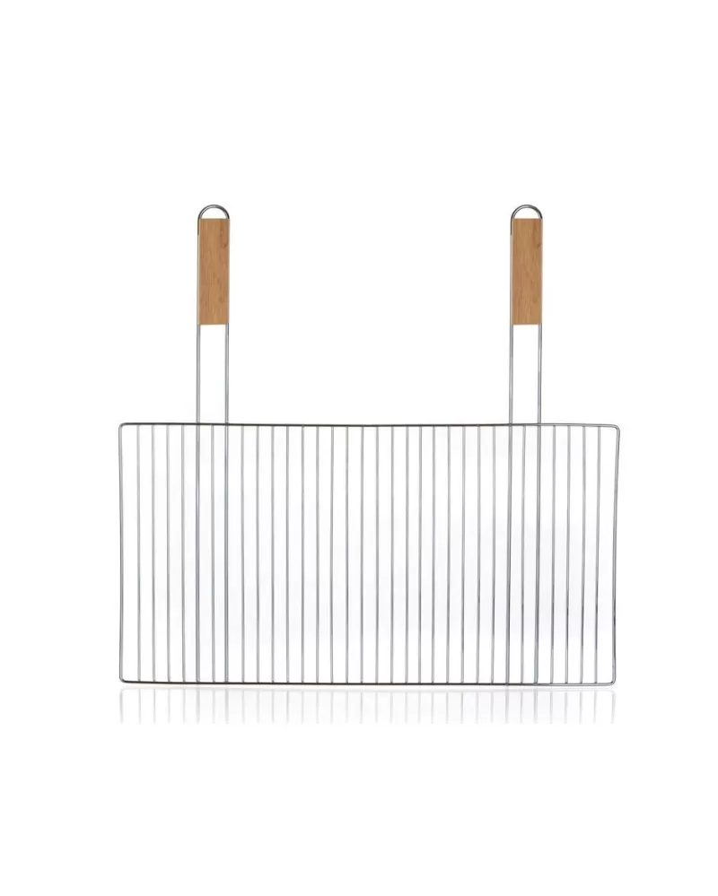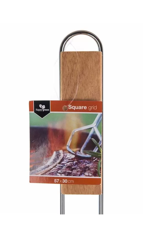 • Grilovací rošt hranatý BBQ s dřevěnými rukojeťmi má rozměr 57 x 30 cm.