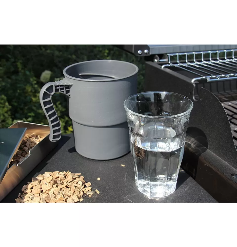 Nádoba pro pohodlné namočení dřevěných udících lupínků. Šroubovací víčko drží lupínky ponořené a usnadňuje vylití vody. Abyste docílili co nejlepších výsledků, lupínky musí být ponořeny ideálně hodinu. Nádobu lze mýt v myčce. Nádoba se dodává prázdná (neobsahuje udící lupínky).