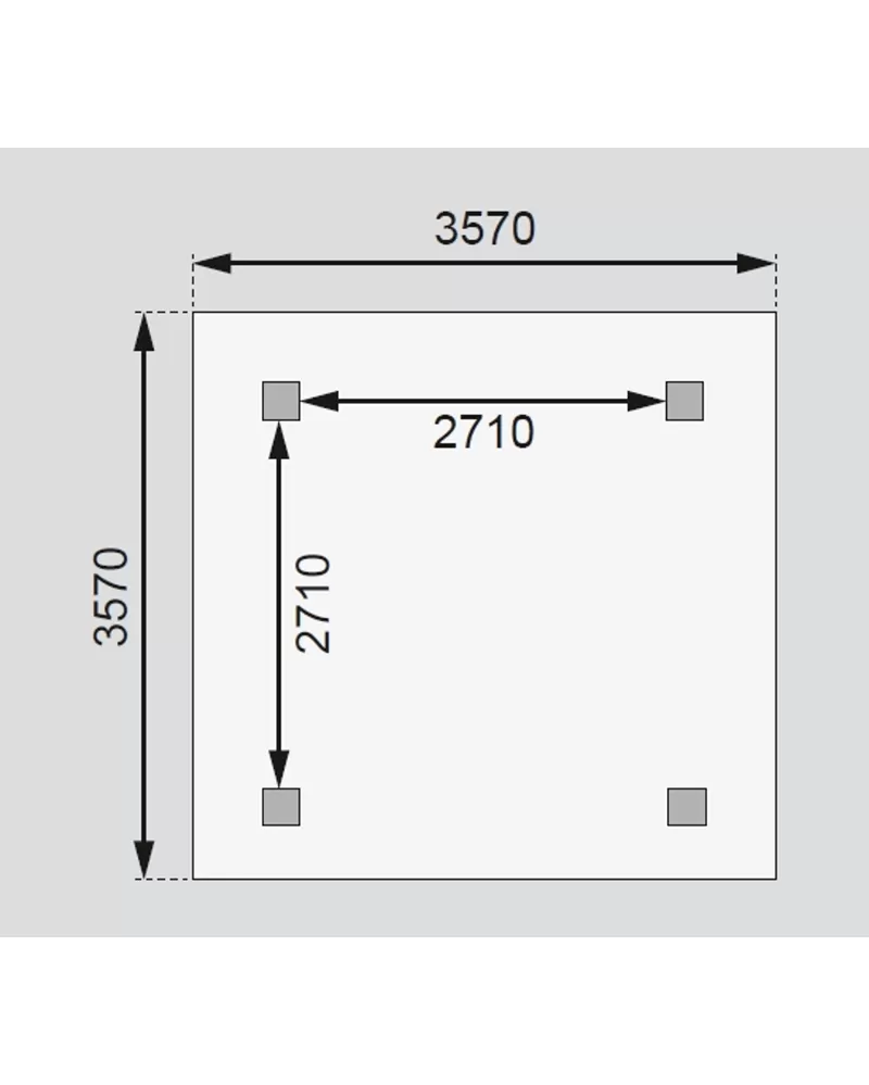 • Celková zastřešená plocha je 3,57 x 3,57 m.