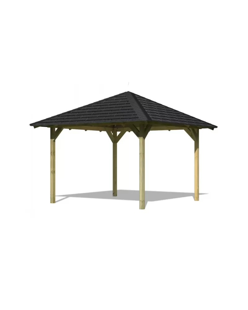 Zahradní altán KARIBU CORDOBA 68820 vč. černého střešního šindele LG1938 Pavilon má základní čtvercový tvar a díky vnitřnímu rozměru 2,71 x 2,71… Celý popis