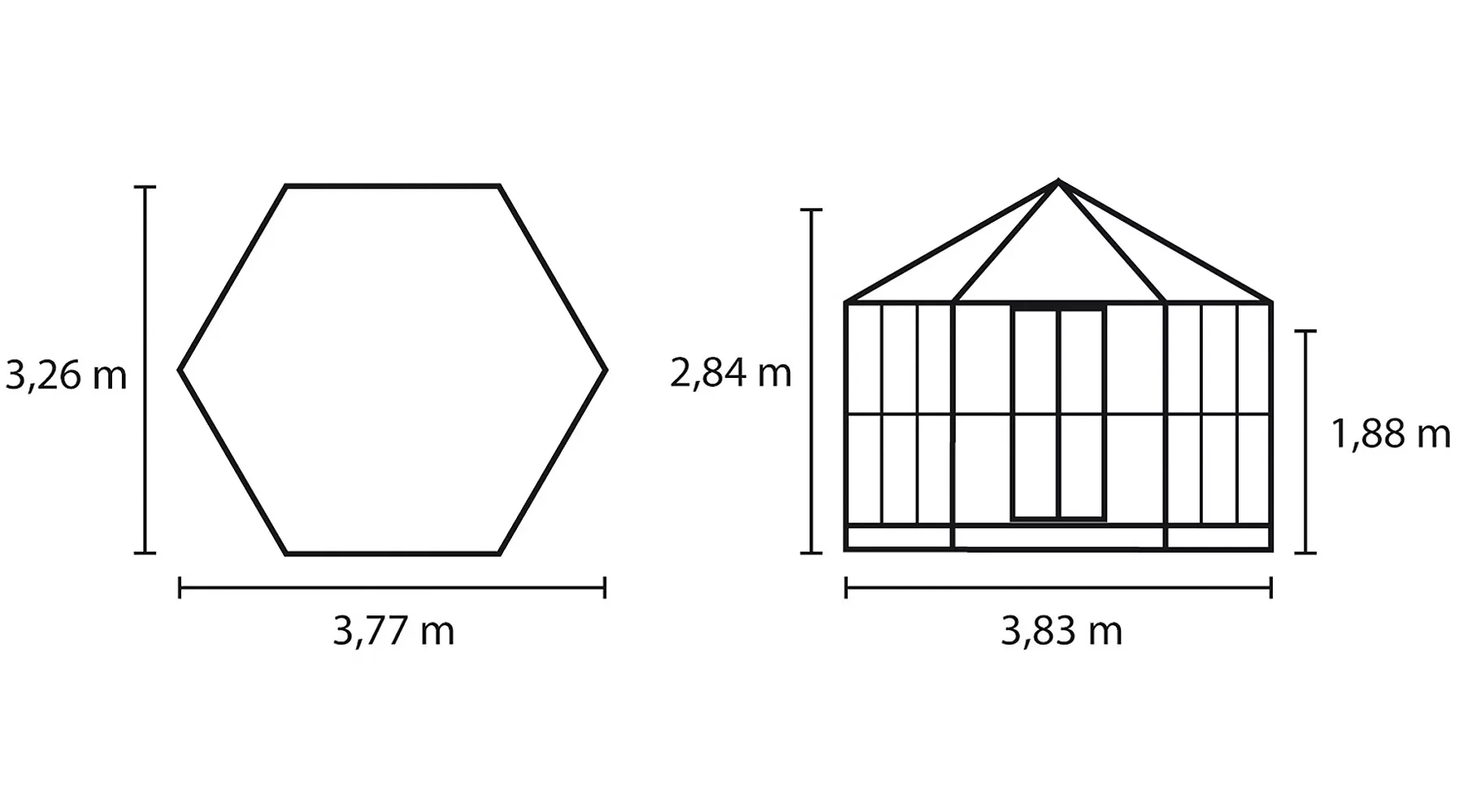 Pavilon HERA 9000 je zařazený do kategorie PREMIUM - skleník je vyrobený značkovým výrobcem z Velké Británie. Pavilon je vyrobený z eloxovaných hliníkových profilů. Prosklení stěn je z klasického čirého bezpečnostního skla síly 3 mm (stěny) a z nerozbitného komůrkového polykarbonátu 6 mm (střecha). Čiré sklo zajišťuje výbornou světelnou propustnost, takže do skleníku je krásně vidět ze všech stran a můžete se kochat barvami pěstovaných rostlin. Kalená verze skla navíc zajišťuje jeho naprostou bezpečnost - v případě rozbití se skleněná výplň roztříští na tisíce malých kousků, což zabrání případnému vážnému zranění. To je velmi důležitá vlastnost skleníku, kterou ocení především rodiče malých dětí pobíhajících po zahradě.  Polykarbonát ve střeše - vysoce kvalitní dvoustěnný polykarbonát s UV filtrem (nekřehne, nežloutne) od evropského výrobce. Polykarbonát i sklo jsou do hliníkových profilů uchycené pomocí ocelových sponek. Součástí pavilonu je i pozinkovaná ocelová základna o výšce 6 cm. Na nerozbitnost polykarbonátu krupobitím poskytujeme prodlouženou záruku v délce 10 let.