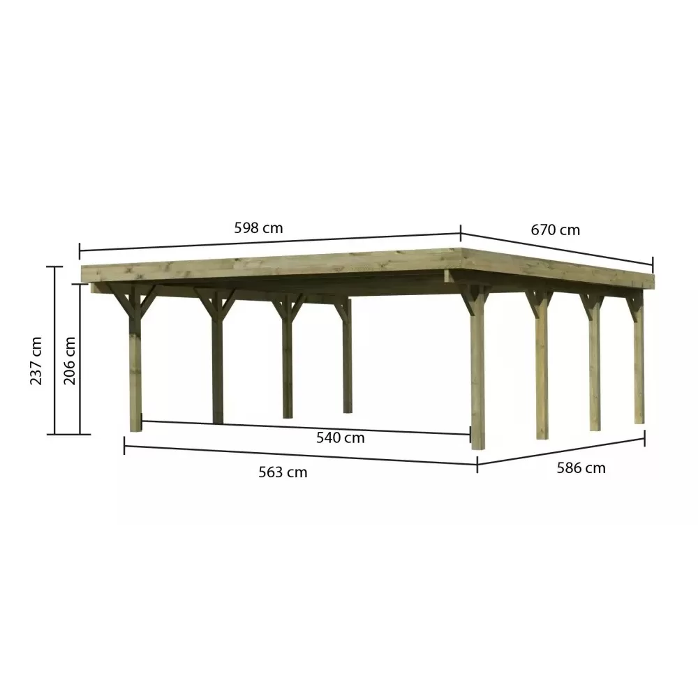 Carport KARIBU CLASSIC 2A 61960 LG3310 Dřevěný přístřešek na auto, š 563 x d 586 x v 206 cm, zastavěná plocha 33 m2. Německá kvalita od prémiového… Celý popis
