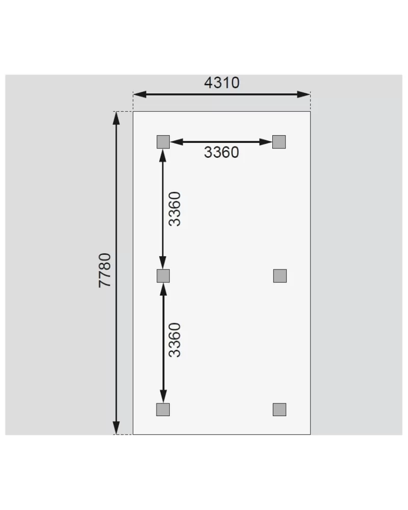 • Celková zastřešená plocha je 4,313 x 7,78 m.